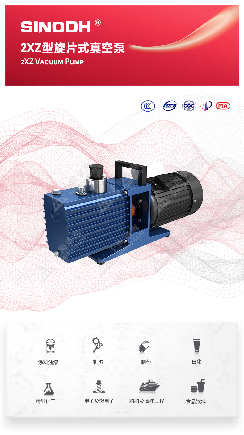 2XZ型旋片式真空泵,为上海东海泵阀制造有限公司自主研发生产。本系列产品是用来对密封容器抽除气体的基本设备之一。它可单独作用,也可作为增压泵、扩散泵、分子泵等的前级泵,维持泵,钛泵的预抽泵用。因为它具有体积小、质量轻、操声低等优点,所以更适宜于实验室里使用。